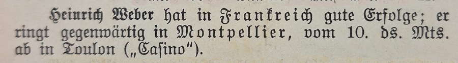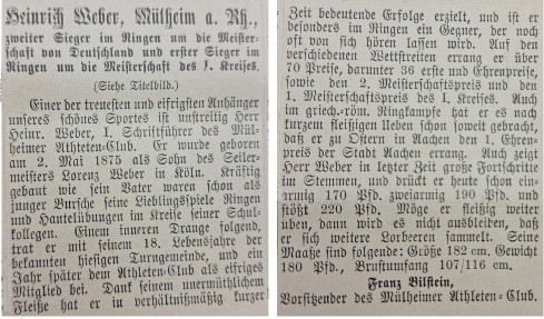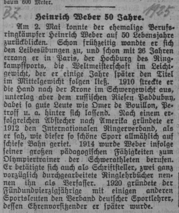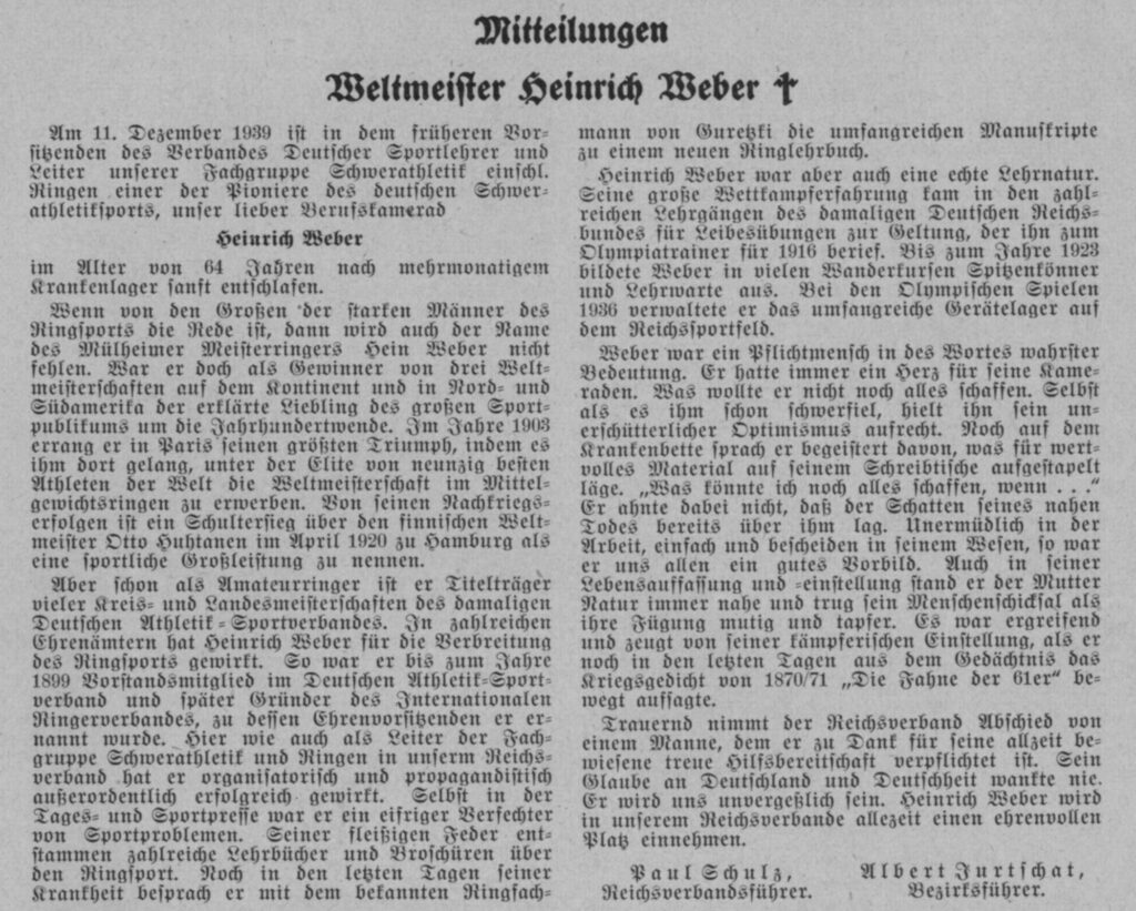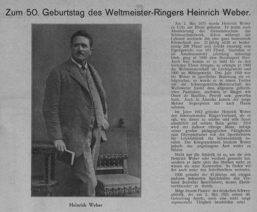 30. Dezember: Der ‚Internationale Ringer Verband‘ ernennt Heinrich Weber „für seine verdienstvollen Leistungen“ zum „Ehren Vorsitzenden“
