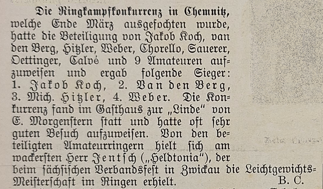 „Ringen beim Athletik Club Germania“ in Aachen – 2. Platz