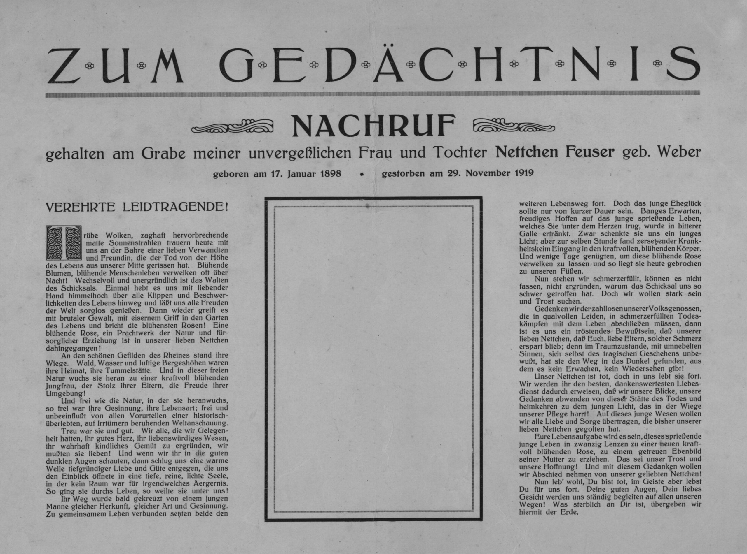 29. November: Heinrich Webers Tochter Catharina [„Netta“] stirbt im Alter von 20 Jahren im Kindbett