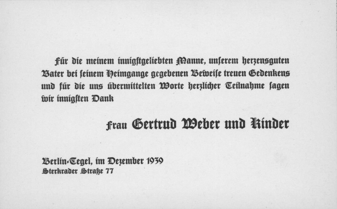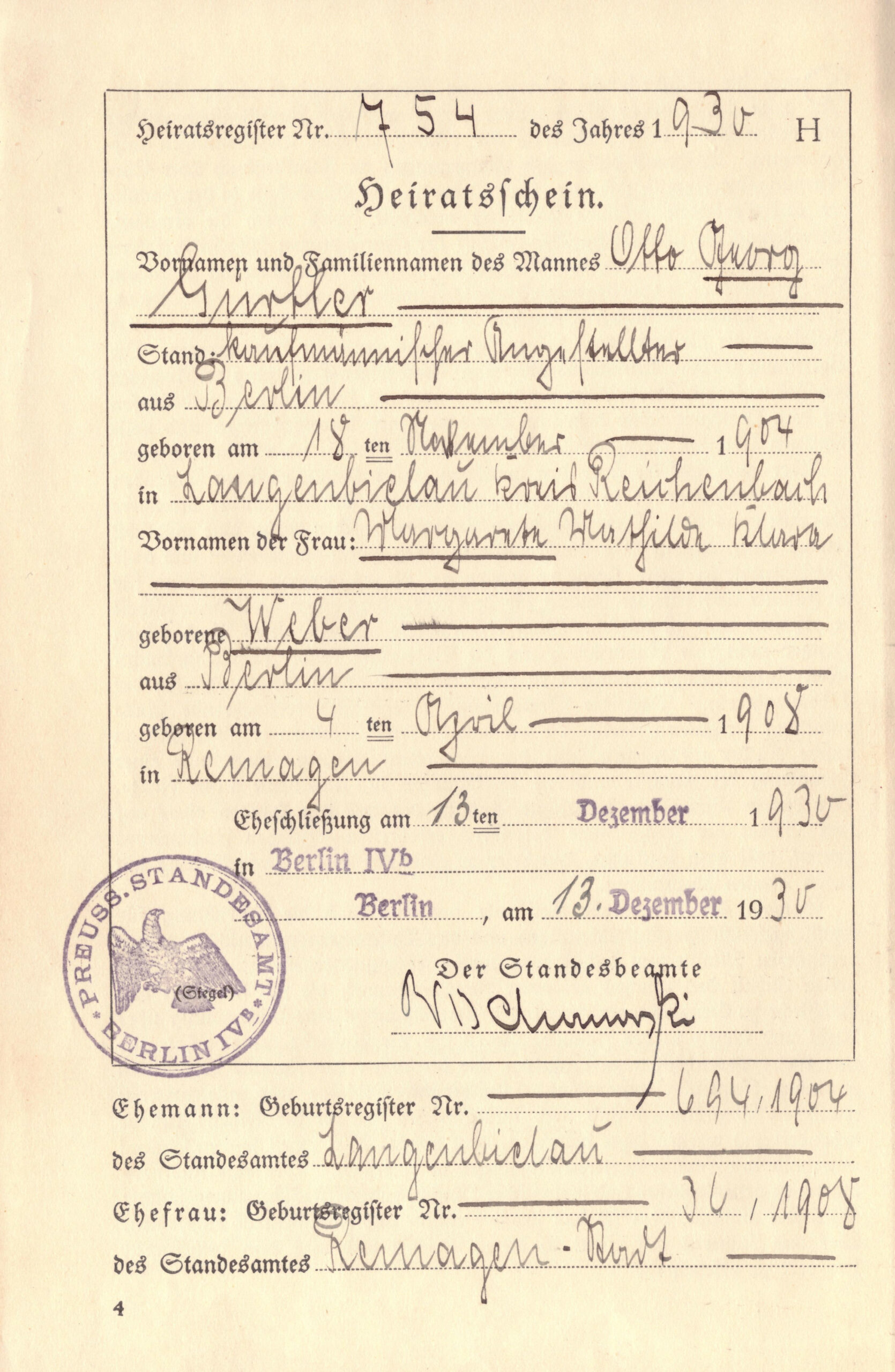 13. Dezember: Hochzeit der Tochter Margareta Mathilde Clara [„Gretel“] Weber mit Otto Georg Gürtler