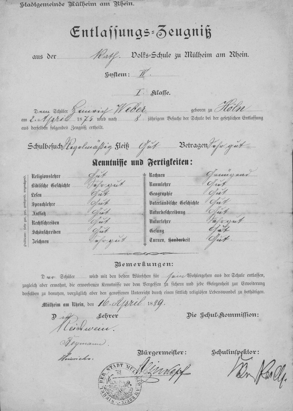 Heinrich Weber verlässt die Volksschule zu Mülheim