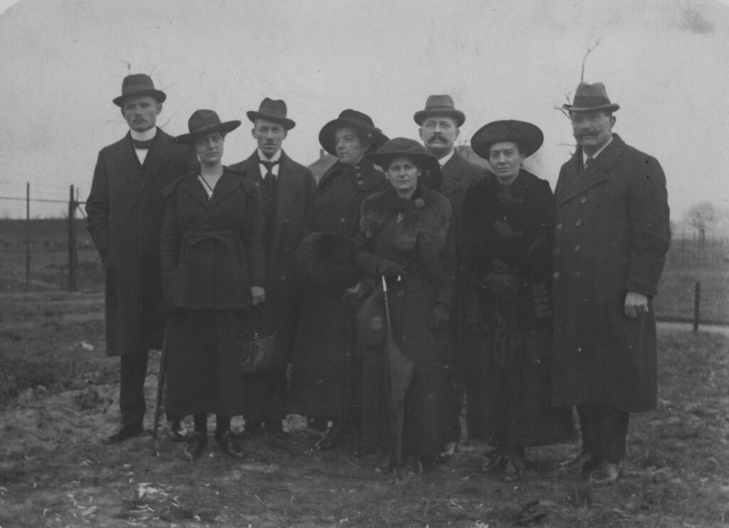 Alter Friedhof Berlin-Tegel (v.l. Jakob Weber mit Frau [Berta], Karl Feuser, Anna Weber [Frau von Jean Weber], Trina Schumacher [Frau von Jean Schumacher aus Mülheim], Jean Weber, Gertrud und Heinrich Weber [Nettas Eltern]); Sammlung privat