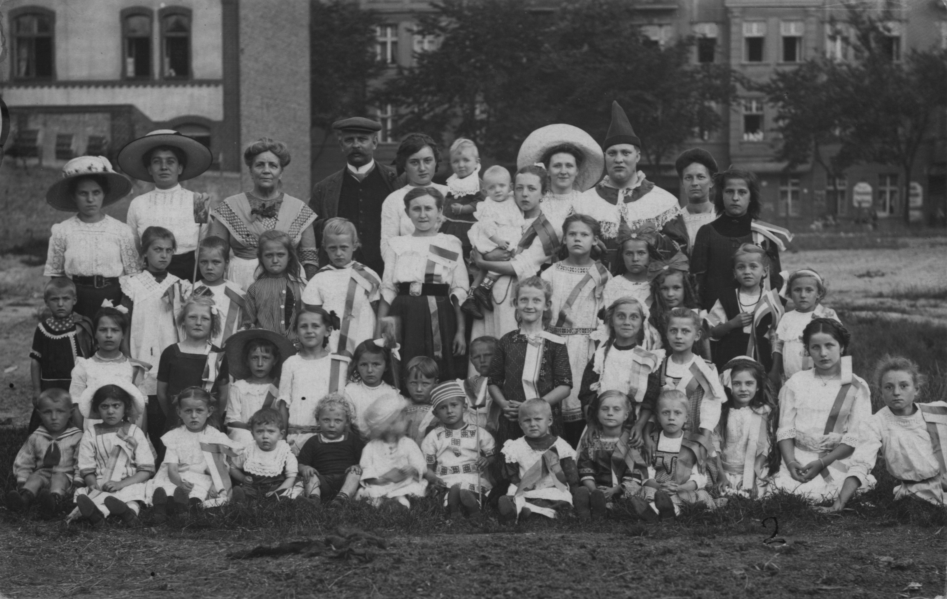 Trautchen Weber (stehend, letzte Reihe zweite von links), Netta Weber (stehend, letzte Reihe Mitte) mit Traudi auf dem Arm; Sammlung privat