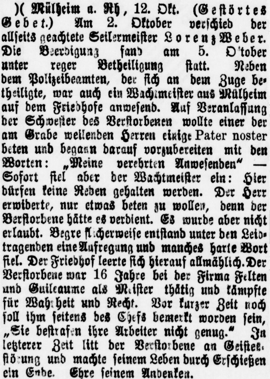 Stumpf vor sich hinbrütend trat Lorenz vor die Schwelle des Hauses. Die Hoffnung auf den erwarteten wirtschaftlichen Aufschwung war empfindlich umdüstert. Die amerikanische, wie auch andere Firmen verlangten die praktische Vorführung der von ihm erfundenen Maschine. Da er aber keinen Finanzmann fand, der sich heranwagte, sah er sich gezwungen, sie nun doch seinem Arbeitgeber anzubieten, der, den hohen Wert erkennend, sofort die Herstellung in Angriff nahm. Das „Felseck-Patent“ wurde Betriebs- und Stadtgespräch. Ließ der Chef ihm also die Ehre, so nahm er ihm doch gleichzeitig den Rest vom Glauben an ein würdiges Äquivalent. Eine Gratifikation von Dreihundert Mark, eine kleine Gehaltsaufbesserung und der Titel ‚Obermeister‘, das war alles. Mehr Forderungen hatte Kommerzienrat Von Bergmann entrüstet abgelehnt: „Aber Herr Felseck! Es ist doch Ihre Pflicht, für die Interessen der Firma zu arbeiten!“