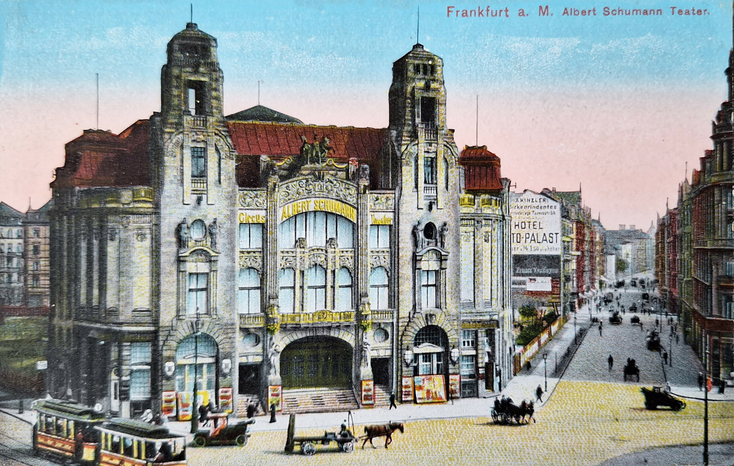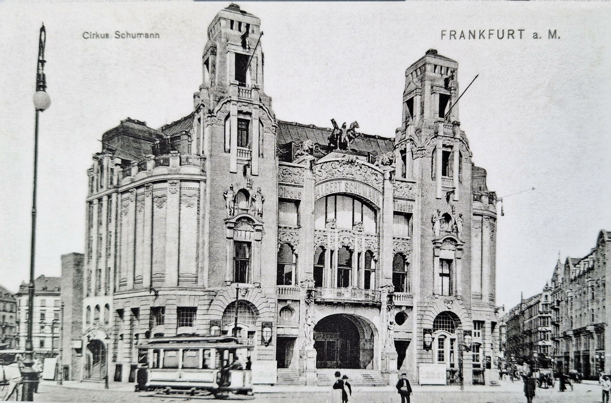 Im Jahr 1904 begannen die Bauarbeiten für das Schumann Theater in Frankfurt am Main. Der Bau dauerte 14 Monate und kostete 4 Millionen Mark. Das Theater und Varieté befand sich in zentraler Lage gegenüber dem Frankfurter Hauptbahnhof. Das imposante Gebäude war im Jugendstil erbaut und bot bis zu 5.000 Zuschauer:innen Platz. Auch unter den Namen Schumanntheater oder Circus Schumann war das Etablissement bekannt.